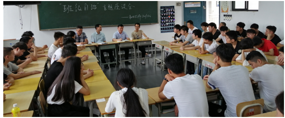 2019年6月11日上午,电气工程系机电技师1801/1802班举行“班级自治”主题座谈会,本次座谈会特邀请到院长陈洪星、系主任王定勇、系副主任汪大庆等院系领导到场交流谈心。
