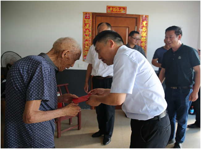 6月27日,株洲市级联点领导、九州网页版党委书记张格林赴醴陵市茶山镇梅霞村推进精准扶贫暨农村人居环境整治工作,并走访慰问抗美援朝、抗美援越功臣的老党员、老同志。党委副书记肖翔,江山集团有限公司党委副书记、工会主席刘海林,茶山镇及梅霞村相关负责人参加工作推进会及走访慰问。