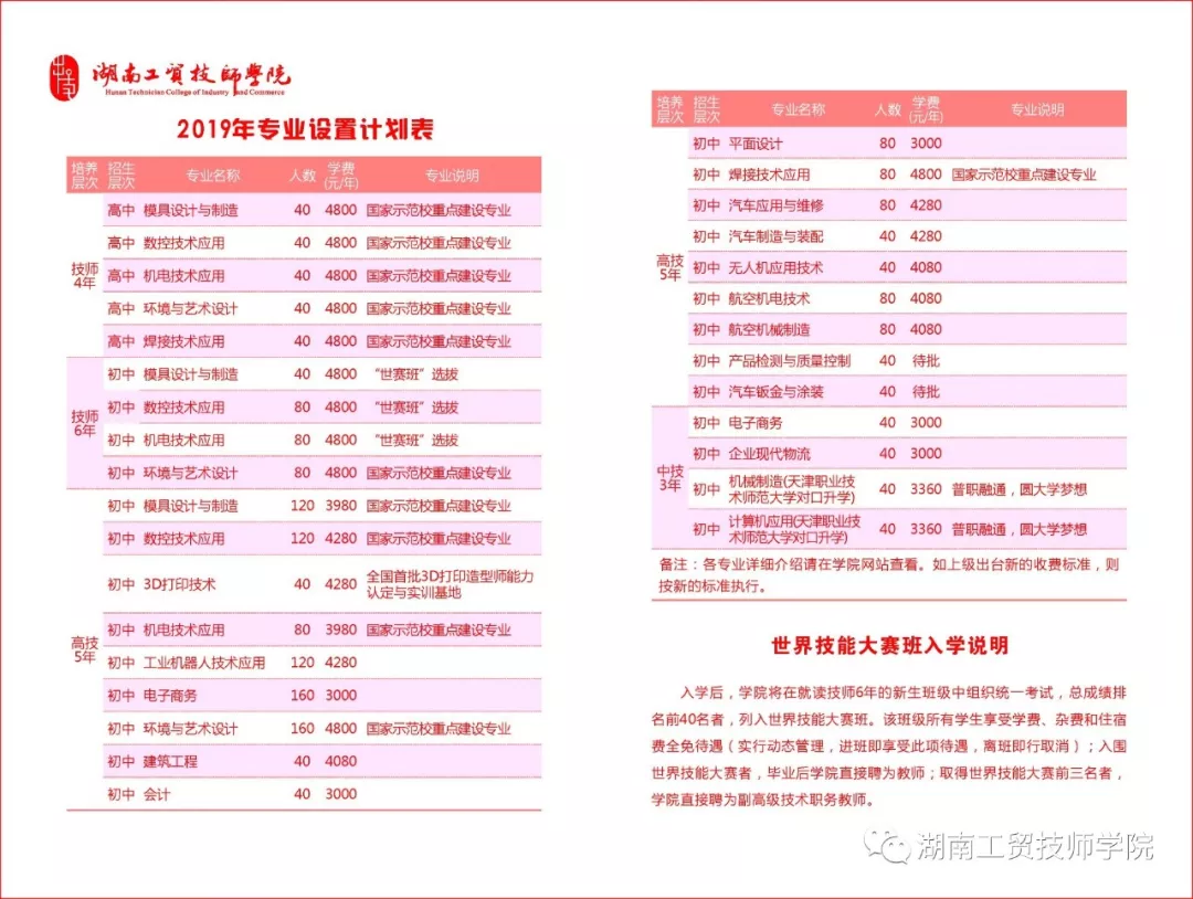 入学后,我们将在就读技师6年的新生班级中组织统一考试,总成绩排名前40名者,名额列入世界技能大赛班。该班级所有学生享受全免学费、杂费和住宿费(实行动态管理,进班即享受此项待遇,离班即行取消);入围世界技能大赛者,毕业后九州网页版直接聘为教师;取得世界技能大赛前三名者,九州网页版直接聘为副高级技术职务教师。
