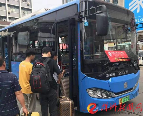 ▲ 学校迎新大巴车送新生和家长入校。 (通讯员供图)