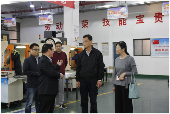 (人社部职业能力建设司副巡视员刘新昌(右二)参观集训基地)