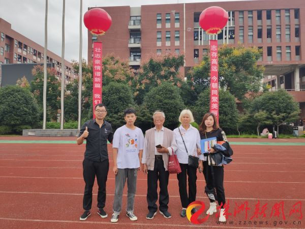 李浩然(左二)与爷爷奶奶、妈妈及指导老师合影 通讯员供图