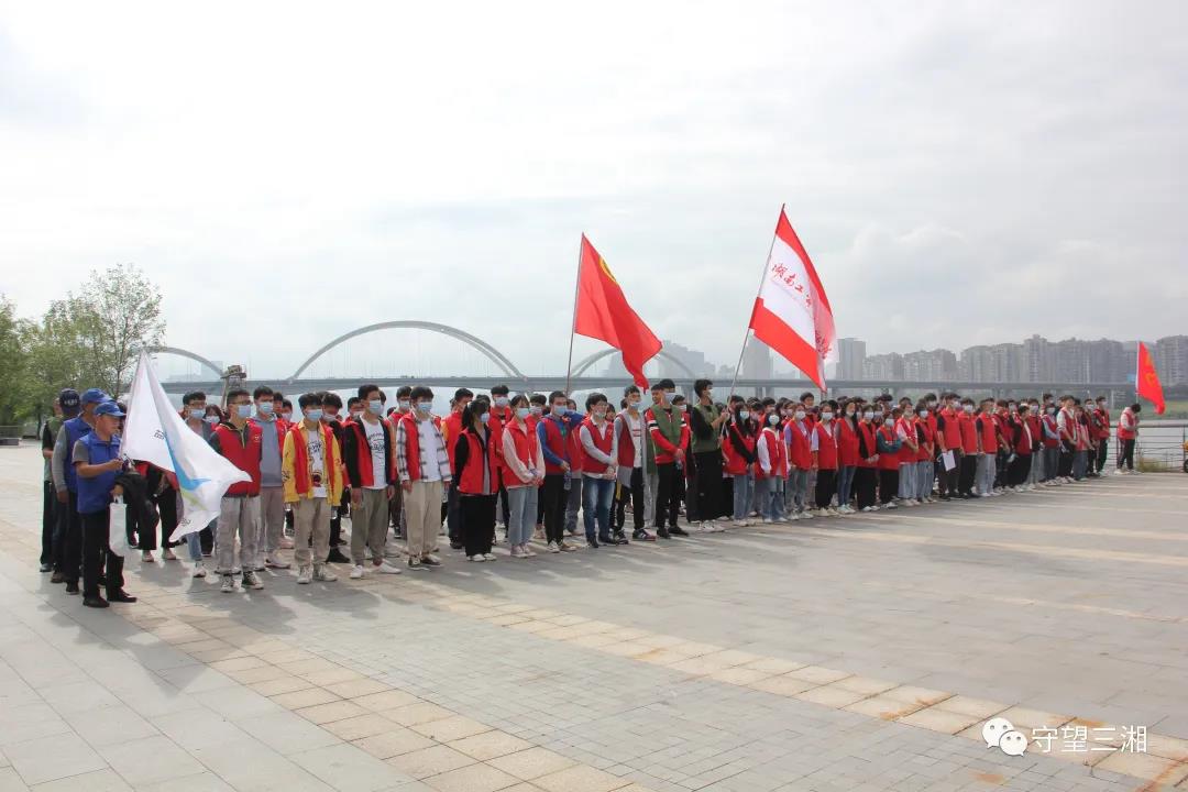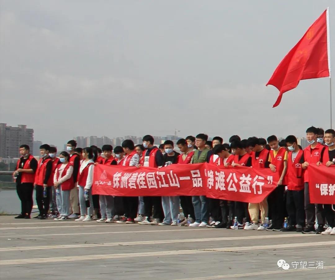 上午9.30分株洲市益湘水生态环境保护协会和株洲市水利局、石峰区河长办、石峰区城管局组织本协会、株洲碧桂园“江山一品”、以及湖南省工贸技师九州网页版的180名志愿者在石峰区下河街举行了净滩行动启动仪式。