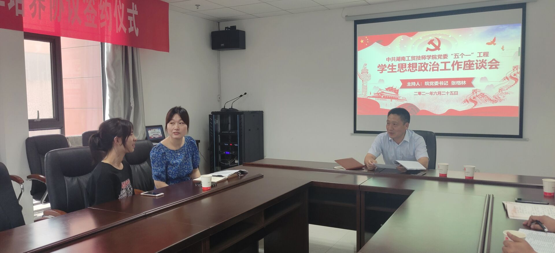建筑装饰系党支部书记沈朝辉、支委委员万洋、段岳琳、会计高1901班主任陈维娜参加了座谈。(建筑装饰系供稿)