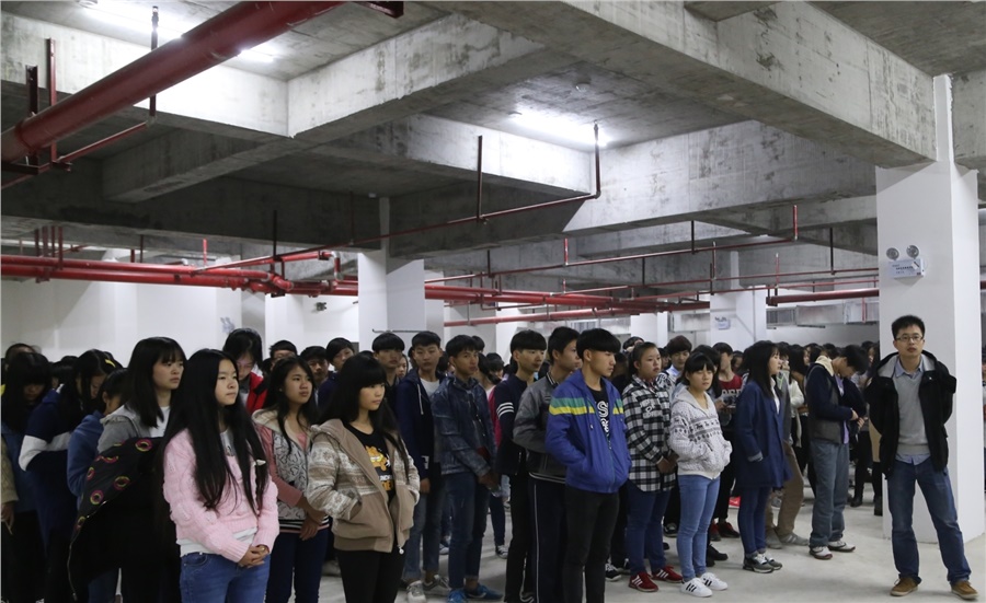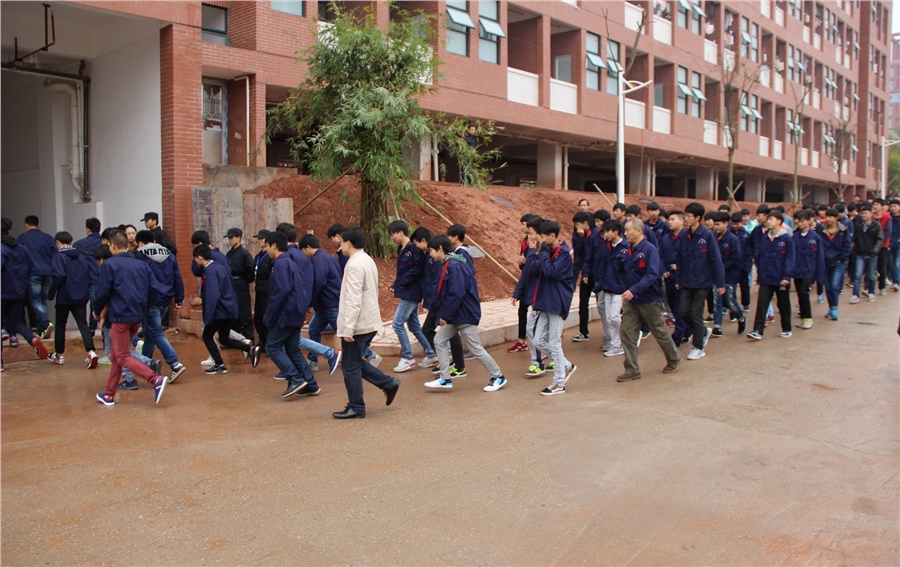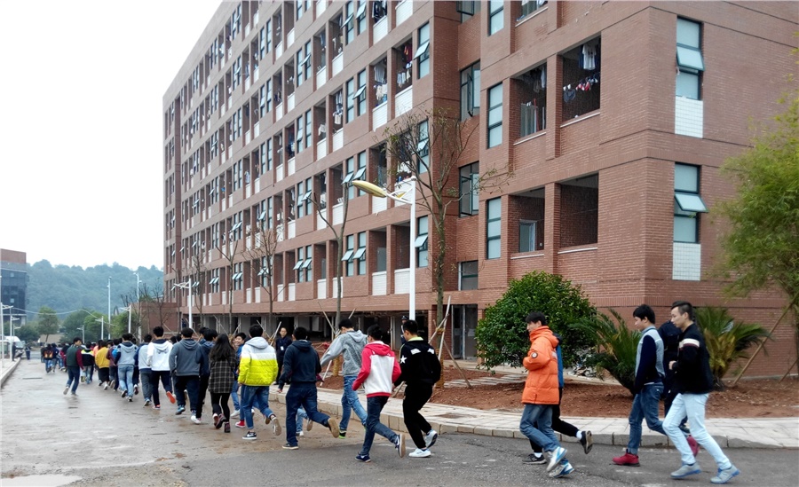 9时30分,随着急促的警报声响起,千余名参演学生在各班班主任的指挥和带领下,先是有条不紊地从教室撤离至教学楼前坪,再分别沿着3条既定的疏散路线快速撤退,并安全进入人防工事内的预定集合位置,最后,班主任现场紧急清点人数,确保全部学生进入人防工事,确认无误后向现场指挥报告,并带领学生等待空袭警报解除。