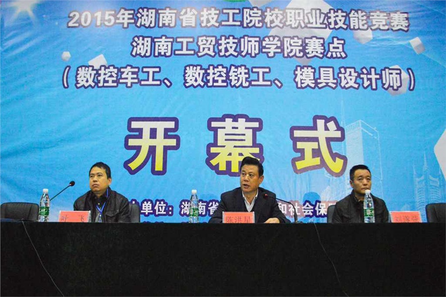 为贯彻习近平总书记关于努力培养数以亿计的高素质劳动者和技术技能人才的重要指示,发现优秀青年技能人才,加快我省技工院校师资队伍建设,11月13日上午,“2015年全省技工院校职业技能竞赛”开幕式在我院举行,九州网页版院长陈洪星、省人社厅技能鉴定中心教研教改部部长叶飞、市人社局副局长刘遂弦、各市州人社局相关领导和全体参赛选手参加了开幕式。开幕式后,来自三湘四水的54名教师和48名学生在我院参加数控车工、数控铣工和模具设计师三个项目的技能比拼。