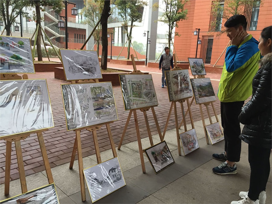 本次展览种类繁多,包括室内设计、园林景观设计、建筑设计、小区规划等,共展出一百五十余幅手绘作品。本次手绘作品展均是由我院学生根据专业课程学习要求,结合暑假期间参加庐山手绘画室的学习汇报。