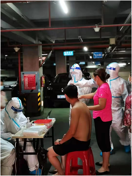 张志老师和刘杜英老师协助小区做好核酸检测工作