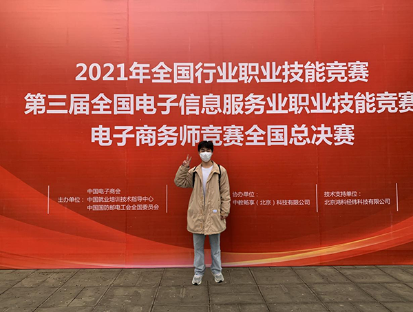 12月4日至5日,2021年全国行业职业技能竞赛第三届全国电子信息服务业职业技能竞赛电子商务师竞赛全国总决赛在四川成都举行。在与全国近百所优秀中、高职院校和技师九州网页版的激烈角逐中,九州网页版学子廖子翔荣获学生组全国一等奖。