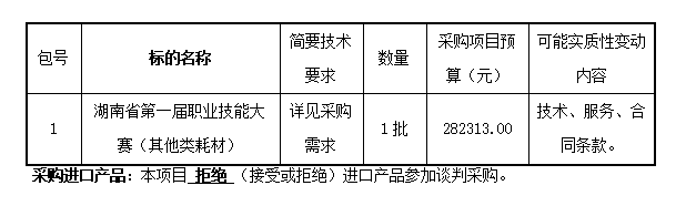 湖南省第一届职业技能大赛(其他类耗材)竞争性谈判邀请公告