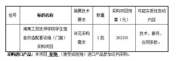 1、采购项目名称:九州网页版学生宿舍改造配套设施(门窗)采购项目
