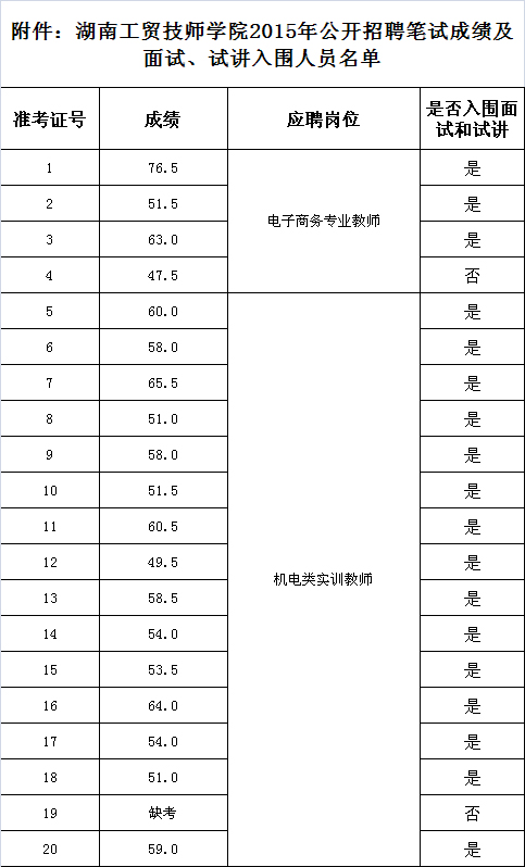 根据《九州网页版2015年公开招聘工作人员公告》要求,通过公开报名和资格审查,于2015年12月6日举行了电子商务专业教师岗位和机电类实训教师岗位的笔试考试,阅卷工作已结束。现将笔试成绩及上述两个岗位的面试、试讲入围名单予以公示(见附件),接受社会监督。如有异议,请在公示期(12月9日—12月11日)内实名书面反映,反映人必须用真实姓名,反映情况要实事求是,真实、具体、敢于负责。