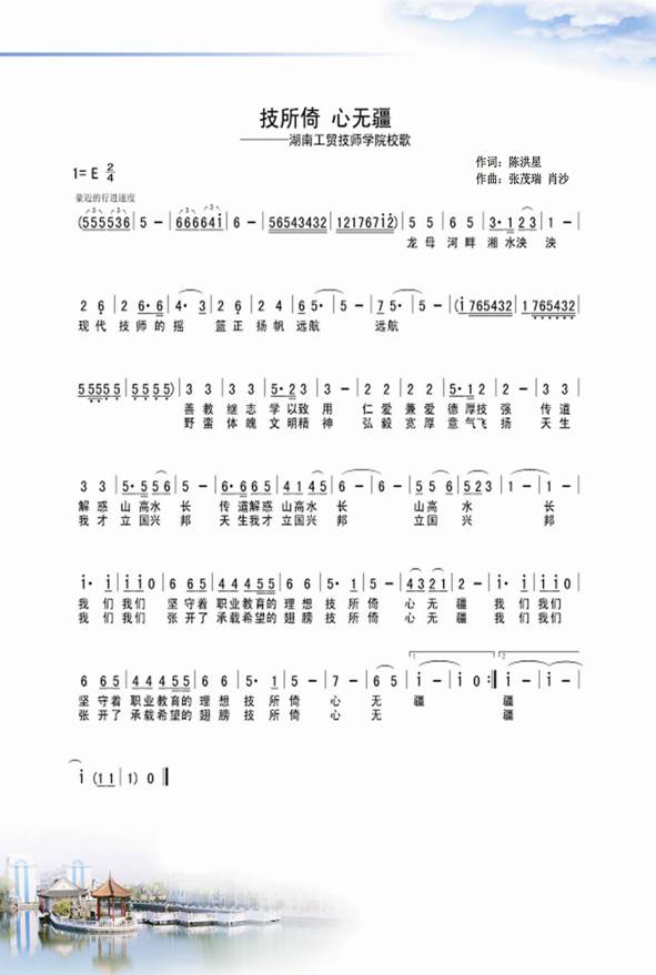 校歌为《技所倚 心无疆》(曲谱附后)。