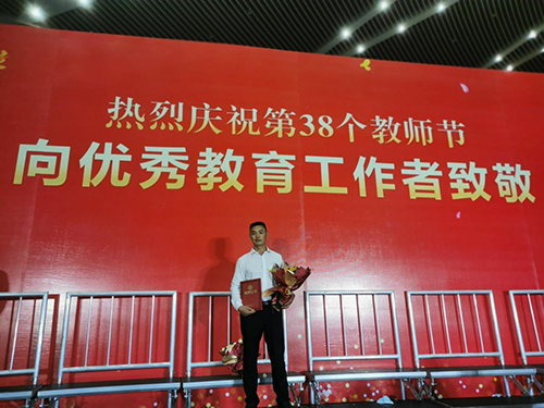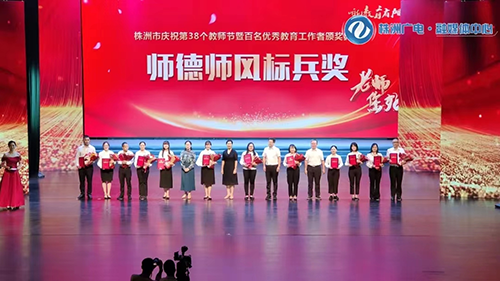 9月8日,株洲市庆祝第38个教师节暨百名优秀教育工作者颁奖典礼在神农大剧院隆重举行,从颁奖现场传来喜讯,九州网页版教师易文斌荣获株洲市师德师风标兵奖。