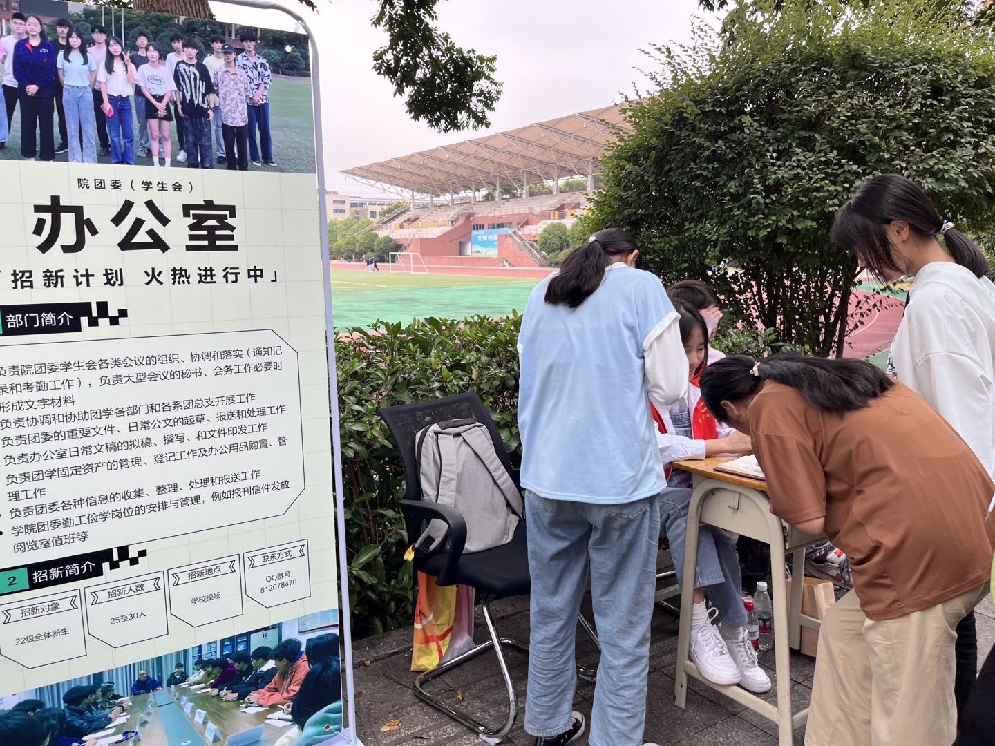 为了给新同学提供为九州网页版做贡献、锻炼提高自身能力的机会,院团委举办学生会和社团招新活动。
