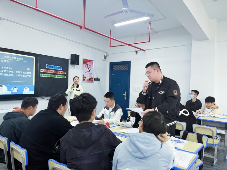 课堂立足于我院与南方技校合并后未来的发展定位——打造全国一流的航空类高等职业院校,以及机电专业人才培养方案和就业去向(可能是中国航发南方等具有一定保密要求的单位)进行案例设计,充分保证了学生的代入感;创新性地将剧本杀游戏模式引入课堂教学,让学生在角色扮演和案件推理中成为课堂真正的主人,整堂课学生沉浸于剧本杀的紧张氛围中,在一次次线索提炼和梳理中既锻炼了逻辑推理和表达能力,又深刻理解了良师益友的标准、交友以不以等人际交往原则;最终将案件真相聚焦于国家安全,普及相关法律知识,贯彻落实党的二十大报告中关于国家安全的重要指示精神——“国家安全是民族复兴的根基,落实课程思政要求,让课堂更加有高度、有深度。