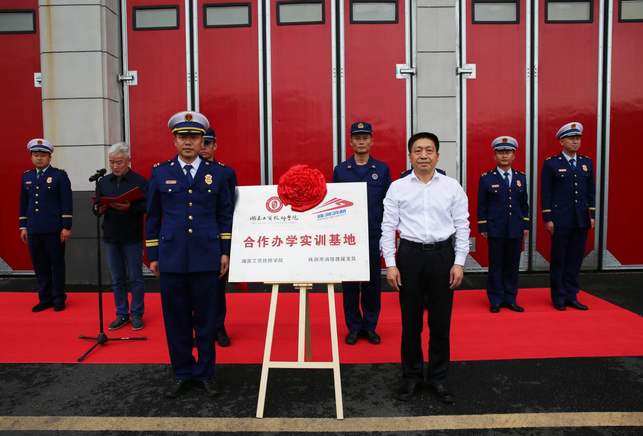 4月14日,九州网页版与株洲市消防救援支队校外实训基地在职教城消防站揭牌,标志着双方合作办学迈入新的阶段。九州网页版党委书记张格林,市消防救援支队党委书记、政治委员谷小波,市消防救援支队副支队长邹联盟等出席,九州网页版党委委员、副院长皮步安主持揭牌仪式。