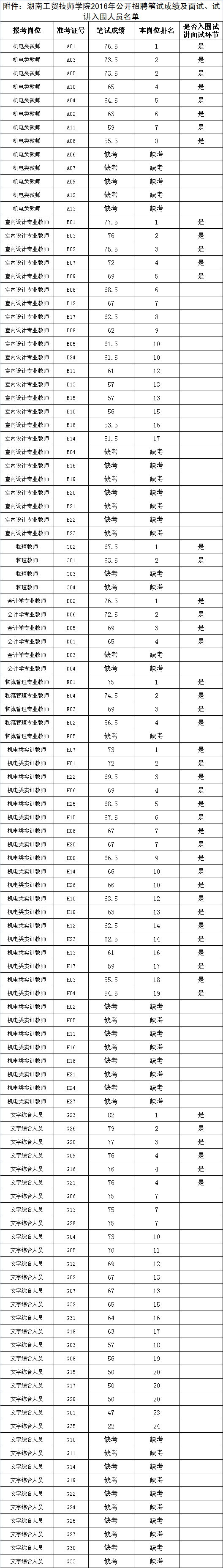 附件:笔试成绩及试讲、面试入围人员名单