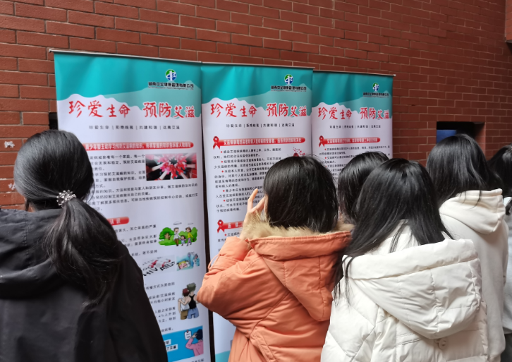 市疾控中心性艾科陈科长向同学们介绍了艾滋病的影响、危害、症状、相关特征、传播途径等,向同学们讲解艾滋病的预防措施、治疗方法,列举展示了一些艾滋病宣传案例和视频,希望同学们自律自爱,远离艾滋病。最后,市疾控中心在活动现场安排HIV病毒抗体免费自动检测和咨询