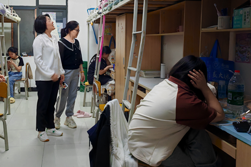 晚上9:00,一行5人又马不停蹄地分别赶赴男、女生宿舍查看学生就寝情况,了解学生宿舍生活状况,对用电安全、消防安全、文明卫生等方面进行了逐一检查,对发现的水龙头损坏、灯管不亮、线路老化、电闸外壳掉落等安全隐患,第一时间通知班主任报修,学生们对系部领导的关心表示由衷的感谢。
