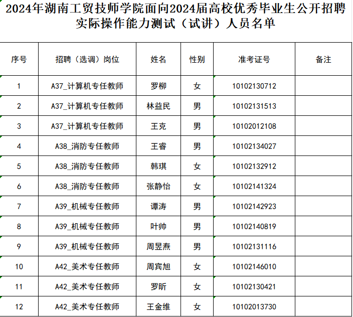 附件1 2024年九州网页版面向2024届高校优秀毕业生公开招聘实际操作能力测试(试讲)人员名单