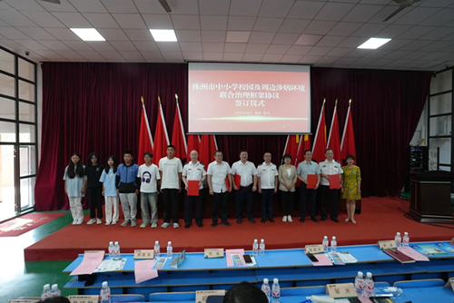 在活动现场,市人民检察院、市公安局、市卫生健康委员会、市场监督管理局、市烟草专卖局五家单位签订了《株洲市中小学校园及周边涉烟环境联合治理框架协议》,明确了各部门在联合治理未成年人免受烟侵害的职责,进一步强化了对未成年人的全面综合司法保护。(学生工作处陈望供稿)