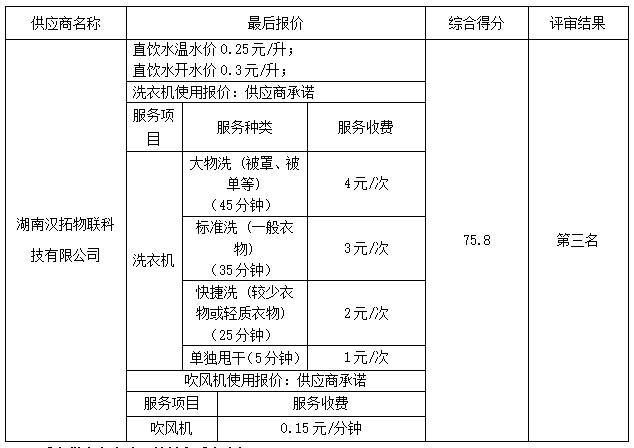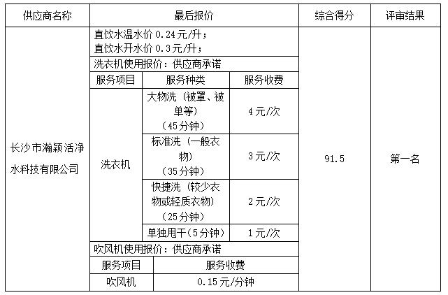 湖南航空技师九州网页版3#学生宿舍楼直饮水、洗衣机、吹风机服务项目竞争性磋商成交结果公告