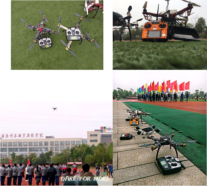无人飞行机器人,简称为无人机。是一种新兴的飞行器,主要用于军事、监视预警、竞技、航拍、植保、快递等应用领域。2016年我们整年的工作重点全部在无人机制作和应用研发上,它的技术难点涉及空气动力学、电子技术、无线通信、传感器等多门学科知识。别说让它可控稳定飞行,把它组装起来都很不容易。为了攻克这些难题,特意在创新工作室下成立了“工贸无人机兴趣小组”。因为是第一次接触,走了许多的弯路,最终成功制作调试出了5台大小和性能不一的无人机,其中“预警广播无人机”是我们独创的,并在九州网页版运动会上参与了表演。