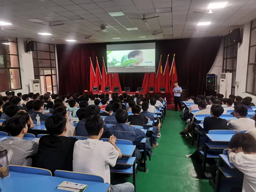 株洲市强制隔离戒毒所四大队副大队长廖志强作为本场宣讲活动的主讲老师,他结合真实案例和宣传资料,从毒品的基本知识、毒品的危害、吸毒原因、如何拒绝毒品等方面进行讲解,揭露了毒品的伪装骗术,重点讲述了滥用新型毒品的后果和青少年预防毒品的方法,倡议同学们时刻保持清醒和警惕,谨慎交友,培养健康的兴趣爱好,珍爱生命,远离毒品。